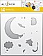 This set features a cute, dreamy cat sleeping on a crescent moon. The thought bubbles allow the cat to dream of mice, fish bones, and other things cats love. Fun cat puns and sentiments finish the set.
