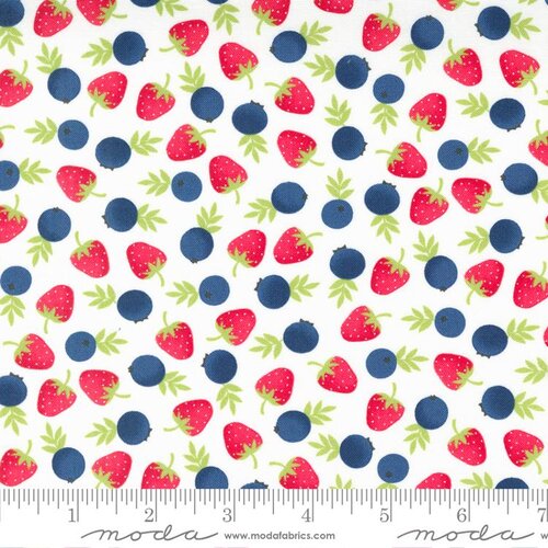 Berry Basket Sugar - Berries Novelty Cranberry Blueberry - Yardage For Moda by April Rosenthal Prairie Grass.