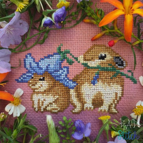 Stitched on your choice of 16 ct Aida with DMC threads. Stitch count is 66 x 64 with a finished size of 4.13" x 4".