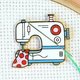 This kit from Bothy Threads was designed by Helen Smith featuring a sewing machine, knitting supplies, scrapbooks, paint and "Craft Den" in the center.