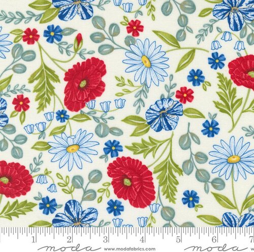 Independence Day Flowers Vanilla Red - Quilt Fabric
