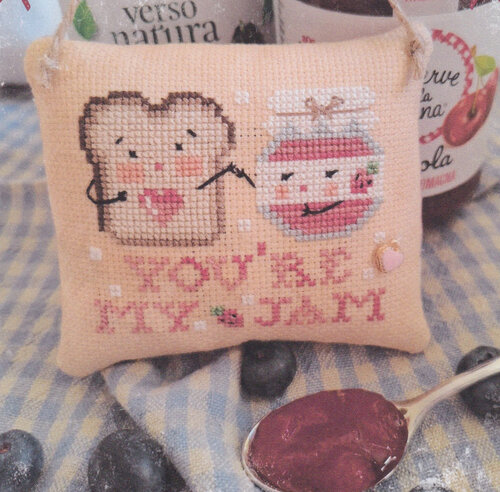 Cross stitch pattern from Fairy Wool In The Wood featuring jam and bread with the phrase "You're my jam"!