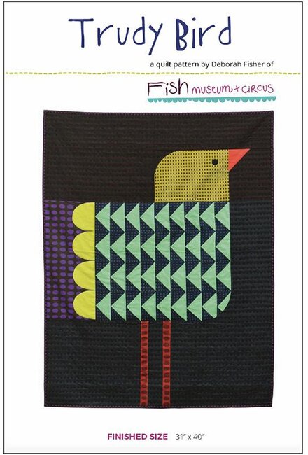 Trudy Bird makes a dramatic statement! This wall size quilt uses simple, graphic shapes to make a bold impact. Trudy Bird is the perfect size and scale for learning or practicing basic piecing, curved piecing, and applique.