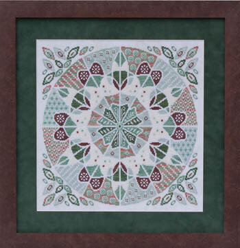 Model stitched on 28 Ct. Fog Cashel linen with Dinky Dyes Silk, DMC Floss, and Mill Hill Beads. Stitch Count: 198W x 196H. Design Size: 15" x 15" One of the Dinky Dye Silks (Fudgy Mint Mousse) is sold only through Glendon Place. Also required, but not listed above, Mill Hill 02044 Allspice Glass Beads - Size 11/0.