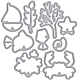 An thick outlined sea-themed clear stamp set featuring sealife, plants, a wave border and even a tiny sailboat with five matching sea sentiments. Coordinates with HA-DI877 Graphic Reef Frame Cuts.