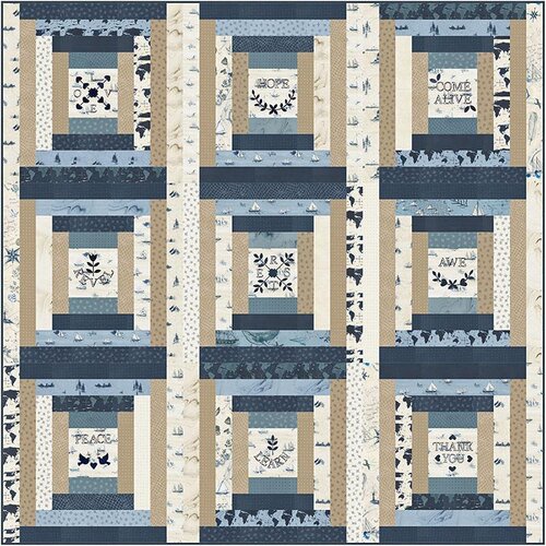 Manchester Square is a modern take on traditional quilting. The quilt is made with nine 1/2 yards or 18 fat quarters. Great for kitting. The quilt measures 60" x 72". It is traditional piecing and has paper templates.
