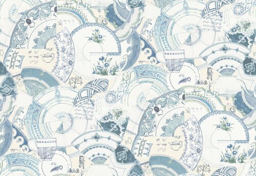 Larking Ceramic Collage Porcelain - Quilt Fabric Larking Ceramic Collage Porcelain - Quilt Fabric Larking Ceramic Collage Porcelain - Quilt Fabric
