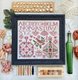 Floss pack includes DMC white, 310, Weeks Dye Works Persimmon, Bluecoat Blue, Santa Cruz, Purple Rain, Liquid Gold, Chrysanthemum, Chesapeake, Lichen, Oscar, and Morris Blue.