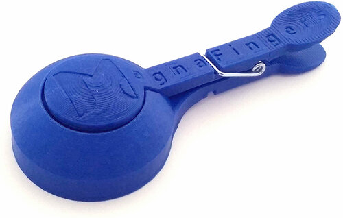 You've dropped pins on the carpet, your needle on the couch, fish hooks in the grass, paperclips are scattered on your desk, and you've lost a tiny screw. Imagine if you could wave a magic wand to solve your problem. NOW YOU CAN! Just wave MagnaFingers to pick up your items, and squeeze to release them where you want them!