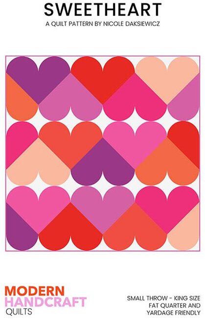 The Sweetheart quilt is a large heart quilt with a bold and modern design. This pattern is a great introduction to sewing curves with quarter curve blocks, half square triangles and squares. There are multiple layouts and sizes to choose from. Fat quarter and yardage friendly.