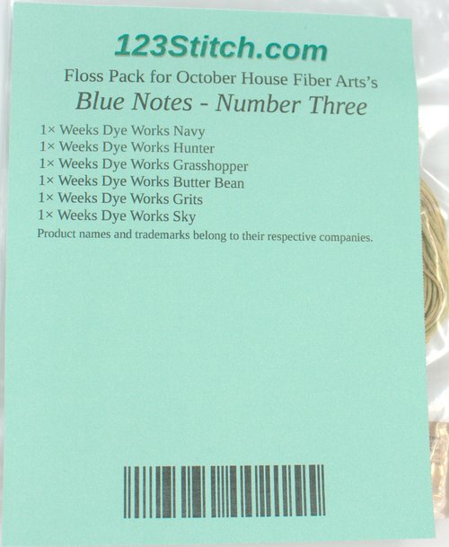 Floss pack includes DMC Ecru, 931, 3021, 3051, 3726, 3802, Weeks Dye Works Deep Sea, Scuppernong, and Whiskey.
