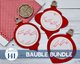 Model stitched on 36 ct Smoke Blue linen using DMC floss. Stitch count: 70w x 70h each. Finished size is 3.9 in wide X 3.9 in high. Finished on the Bauble Bundle by Chantelle's 141 Design Co.