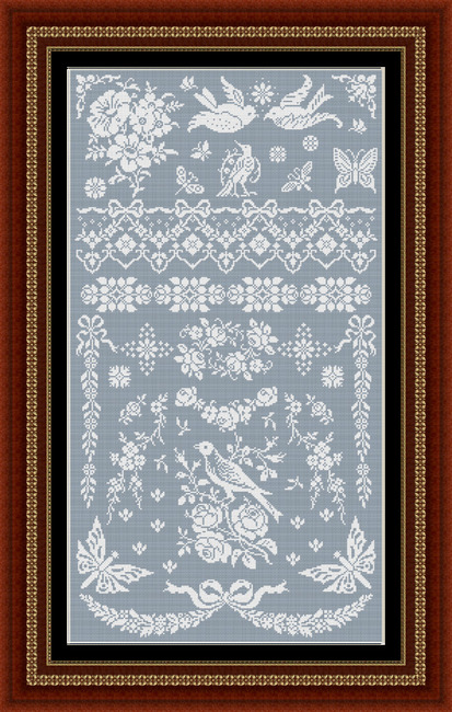 These two little bluebirds are ready to fly! The designs are inverse images of one another - where there are stitches on one, there is empty space on the other. Both charts are included in this pattern.