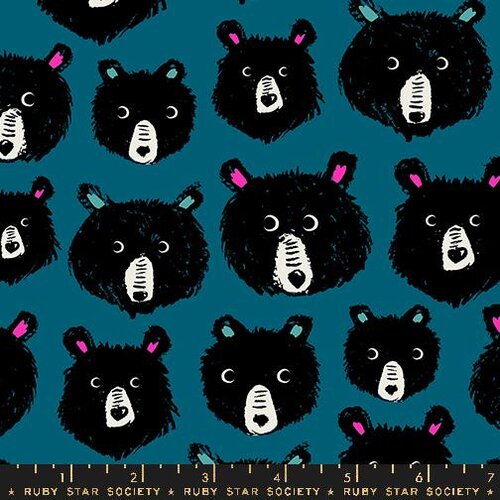Teddy And The Bears Dark Teal - Quilt Fabric