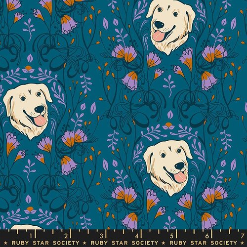 Dog Park Pitbull - Teal Navy - Quilt Fabric