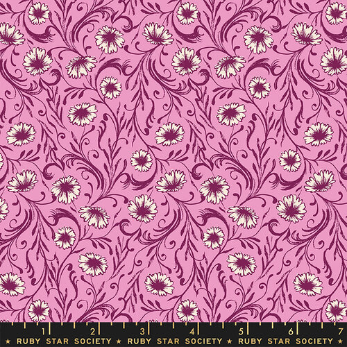 Denim Daisies Rose - Stonewashed - Quilt Fabric