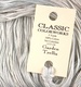 The pattern is stitched on 28 ct Vintage Blue Whisper Cashel usign DMC floss and Rainbow Gallery Glissengloss. Stitch count is 90w x 133h. Finished size is 6.5" x 9.5".