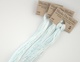 The pattern is stitched on 28 ct Vintage Blue Whisper Cashel usign DMC floss and Rainbow Gallery Glissengloss. Stitch count is 90w x 133h. Finished size is 6.5" x 9.5".