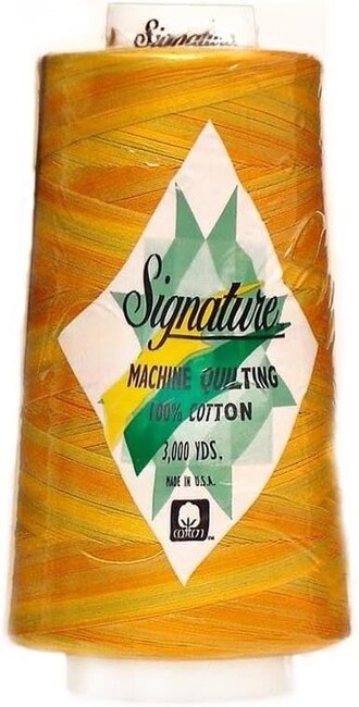 Brassy Yellow Weight: 40 Fiber Content: 3-ply extra long staple cotton, mercerized Recommended Needle size: 75/11, 80/12, 90/14 Signature 40 Cotton: Decorative stitches, free motion quilting and for use in the bobbin on both long arm and home quilting machines. This all-natural cotton thread program... Read more