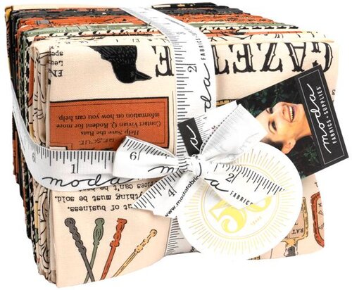 | Fat Quarter Bundle featuring spooky Halloween themed designs including pumpkins, broomsticks, ghosts, and more!