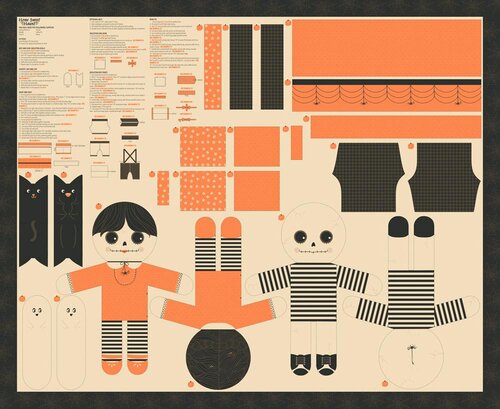 Quilt Panel featuring cut outs to sew cute Halloween dolls!