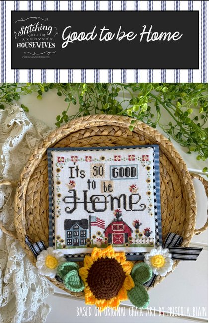 Cross stitch pattern from Stitching With The Housewives featuring the phrase "It's so good to be home"!