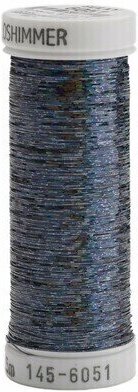 Also known as a blending filament, this fine, sparkly metallic thread is available in a wide variety of colors. When used in the same needle with silk or cotton it bonds to whatever else you put it with.