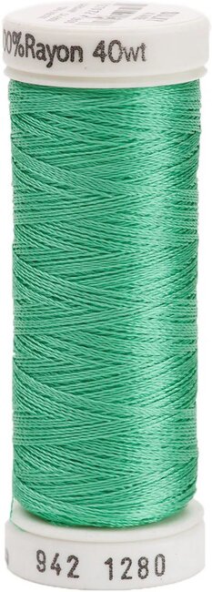 It is a light weight, but exceptionally strong, silky rayon thread. It is colorfast, both washable and dry cleanable. It is recommended that no bleach or whitening agents be used when laundering. While it is a utilitarian weight that works very well in all decorative applications, it is the preferred thread for "free-motion" machine embroidery as well as computerized embroidery. Most computer embroidery designs are digitized for Sulky 40 wt. Rayon Thread.