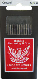 Embroidery/Crewel needles are sharp, medium length needles with a large, oval eye making them easy to thread and work with multiple strands of embroidery floss, perle cotton, or wool yarn.