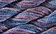 Model stitched on 40 count "Flagstone" linen from Lakeside linen using Weeks Dye Works, Classic Colorworks and DMC threads. The model is trimmed with "Robin's Egg" chenille an backed with "Blue Corn" velveteen from Lady Dot Creates. Stitch Count: 209W x 66H.