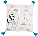 A treehouse is at the center of this design and is surrounded by a giraffe, elephant, dog, teddy bear, rabbit & friends. An alphabet/number chart is included so you can add the baby's name, date of birth and weight.