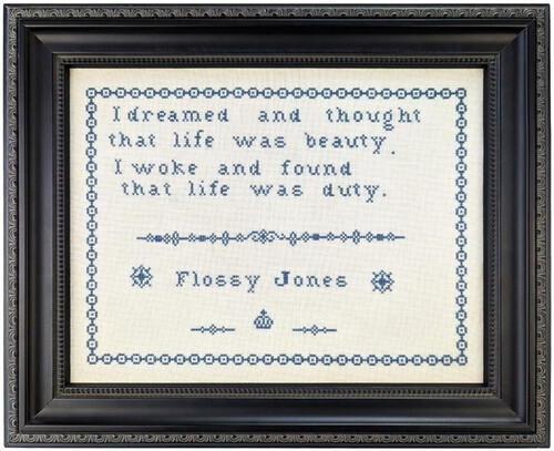 Flossy Jones is a reproduction of a cross stitch sampler from the private collection of Whilst Iris Naps Designs.