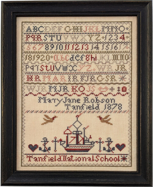 Mary Jane Robson 1878 is a reproduction of a late 19th century English cross stitch sampler from the private collection of Whilst Iris Naps Designs.
