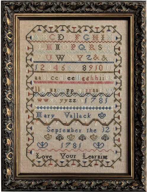 Mary Vallack 1781 is a reproduction of an original sampler in our collection from the South West of England.
